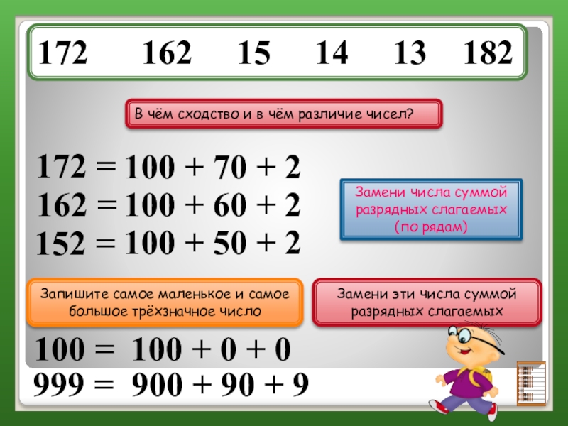 Назовите, сколько в каждом числе сотен, десятков и единиц.