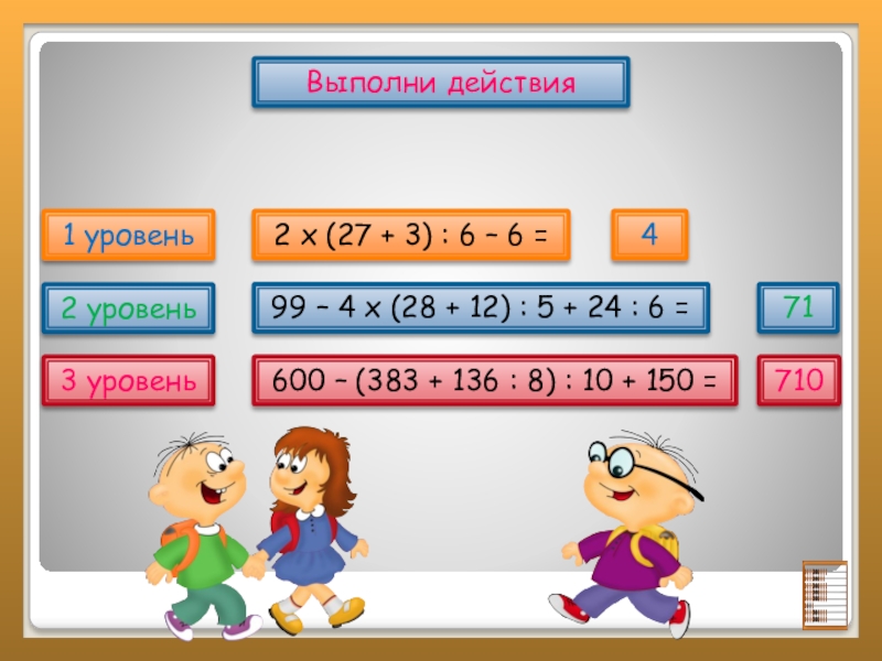 99 – 4 х (28 + 12) : 5 + 24 : 6 =
