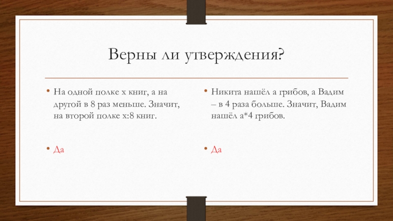Никита нашёл а грибов, а Вадим – в 4 раза больше. Значит, Вадим нашёл а*4 грибов.