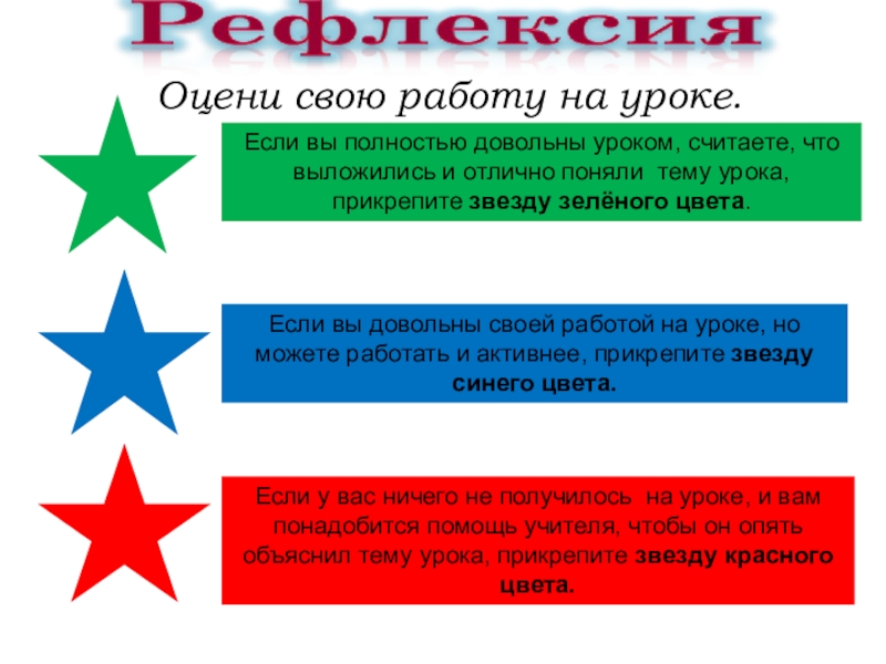Если вы довольны своей работой на уроке, но можете работать и активнее, прикрепите звезду синего цвета.