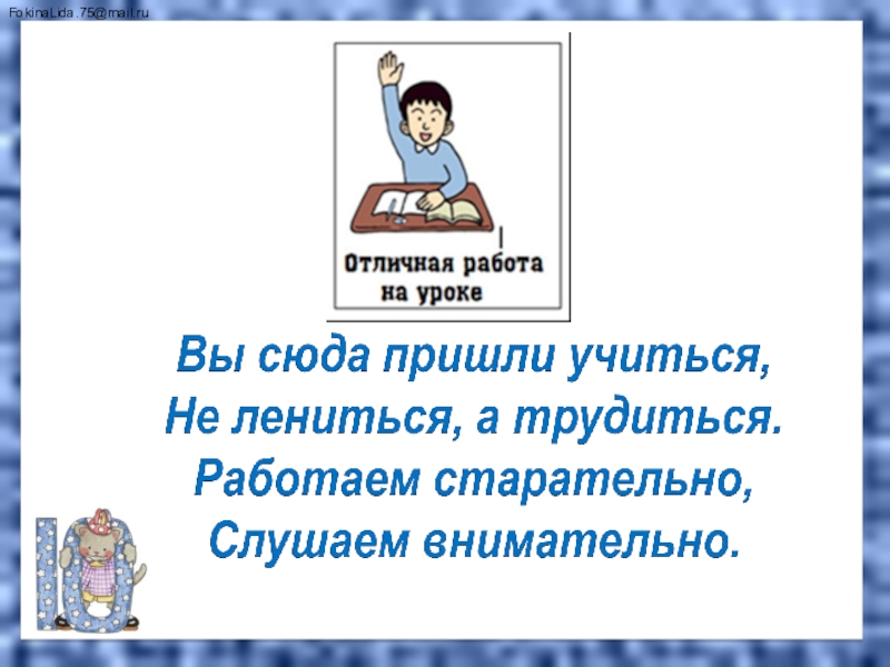 Это сайт презентаций, где можно хранить и обмениваться своими презентациями, докладами, проектами, шаблонами в формате PowerPoint с другими пользователями. Мы помогаем школьникам, студентам, учителям, преподавателям хранить и обмениваться учебными материалами.