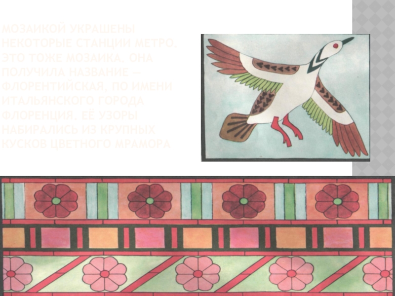 Слайд 9Мозаикой украшены некоторые станции метро.