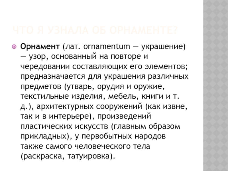 Слайд 4ЧТО Я УЗНАЛА ОБ ОРНАМЕНТЕ?