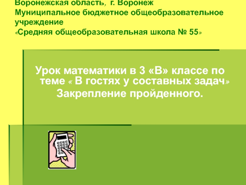 Урок математики в 3 «В» классе по теме « В гостях у составных задач»