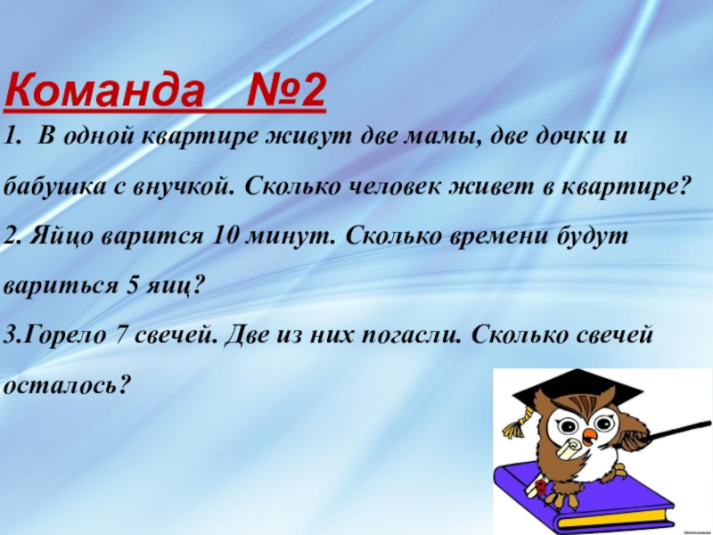 3.Горело 7 свечей. Две из них погасли. Сколько свечей осталось?