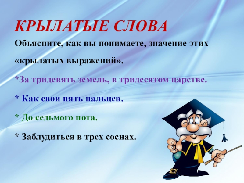 Объясните, как вы понимаете, значение этих «крылатых выражений».