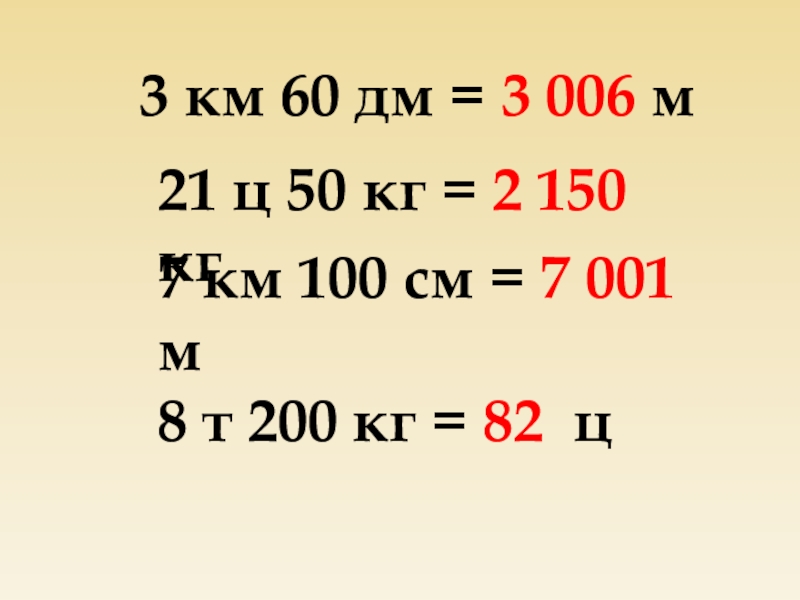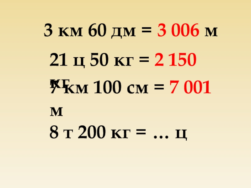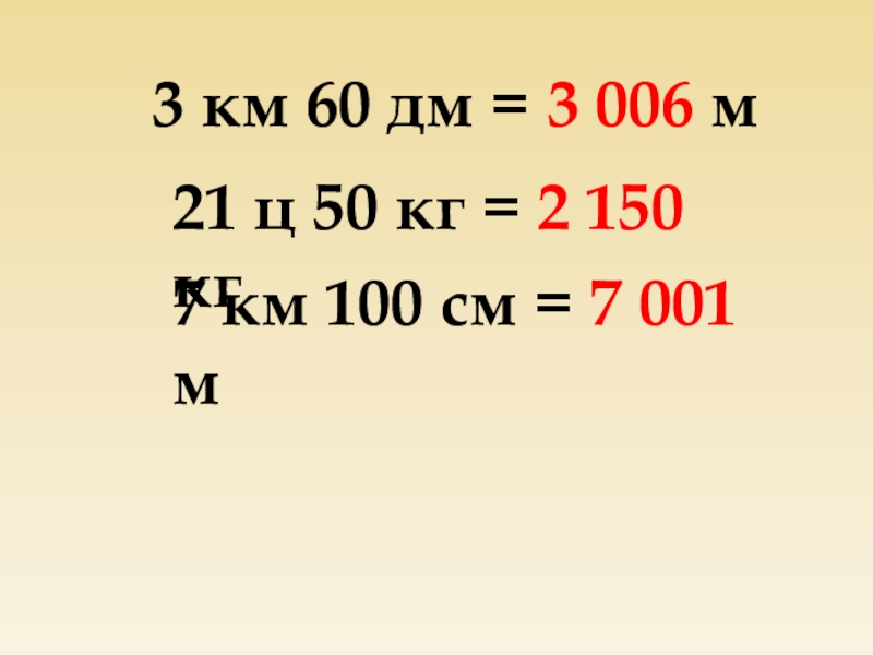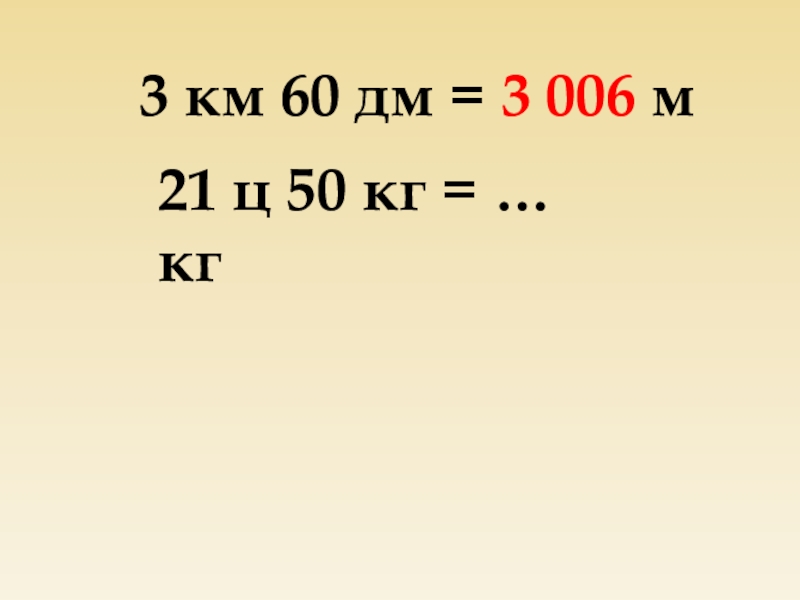 3 км 60 дм = 3 006 м
