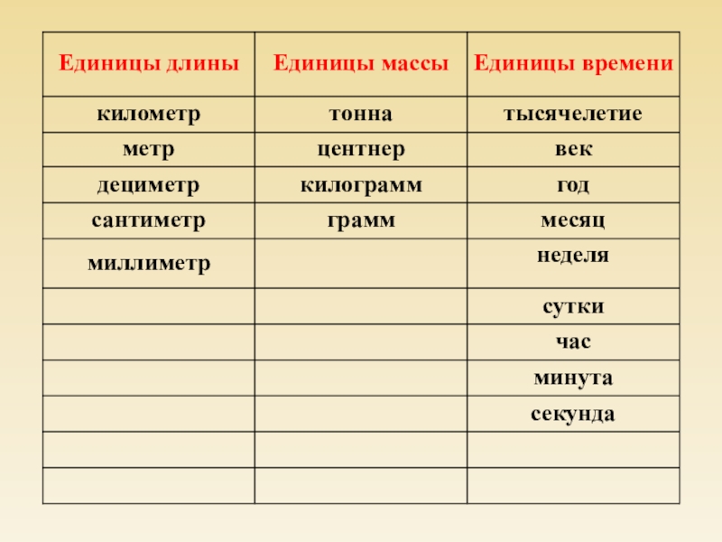 Презентация, доклад по математике на тему Величины 4 класс