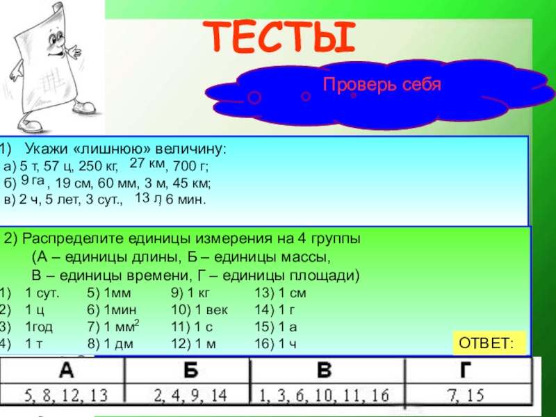 1 сут. 5) 1мм 9) 1 кг 13) 1 см