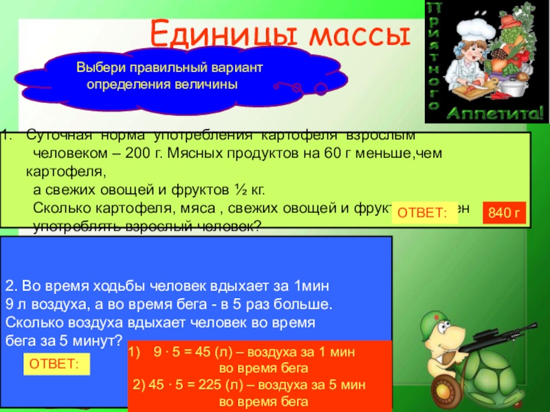 2) 45 ∙ 5 = 225 (л) – воздуха за 5 мин