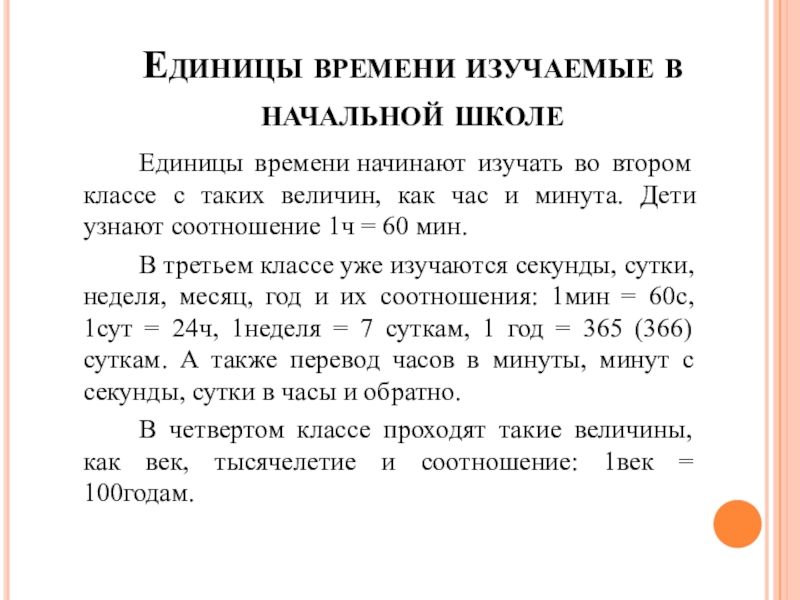 классе с таких величин, как час и минута. Дети узнают соотношение 1ч = 60 мин.