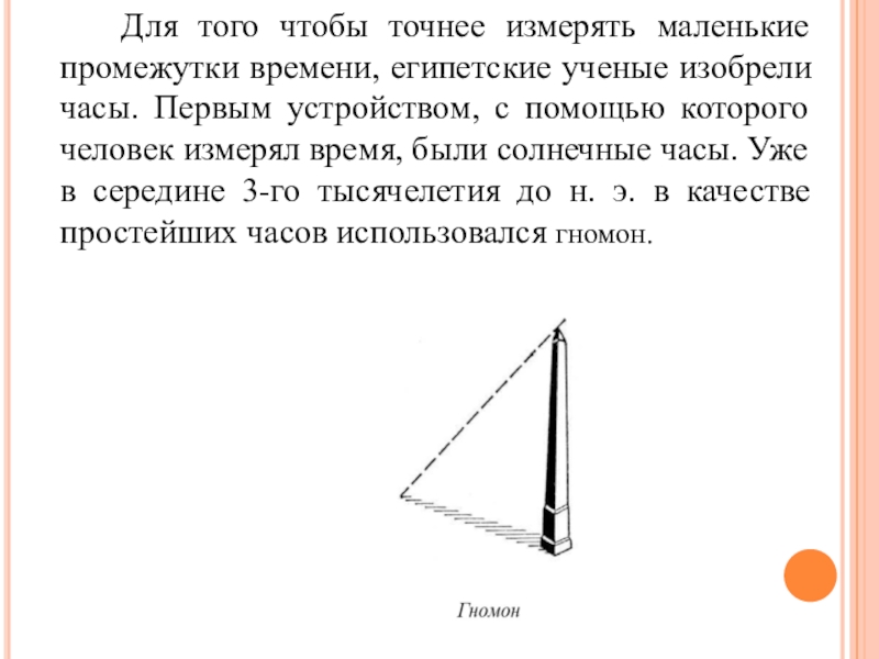 Слайд 13 Для того чтобы точнее измерять маленькие промежутки времени, египетские ученые изобрели