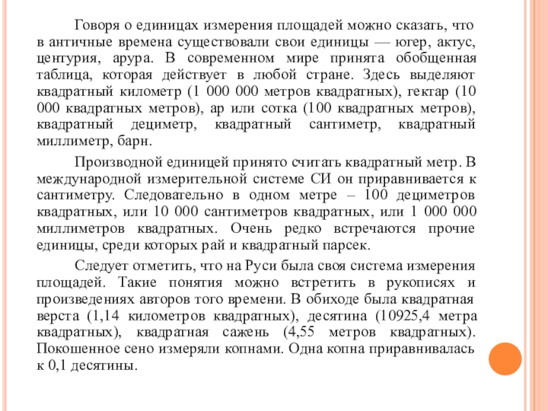Слайд 5 Говоря о единицах измерения площадей можно сказать, что в античные времена