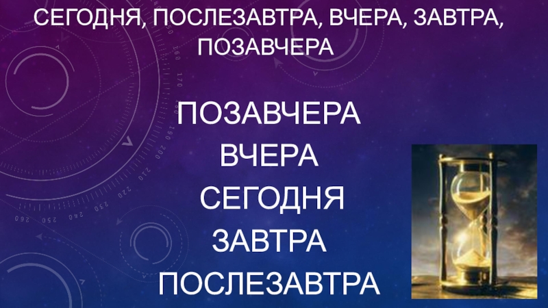 Слайд 3сегодня, послезавтра, вчера, завтра, позавчера