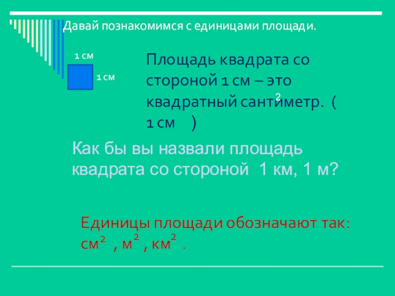 Как бы вы назвали площадь квадрата со стороной 1 км, 1 м?