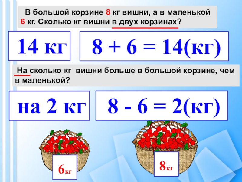 На сколько кг вишни больше в большой корзине, чем