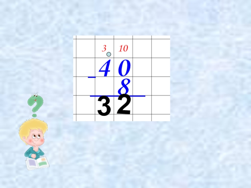 Презентация, доклад по математике на тему Вычитание вида 40-8