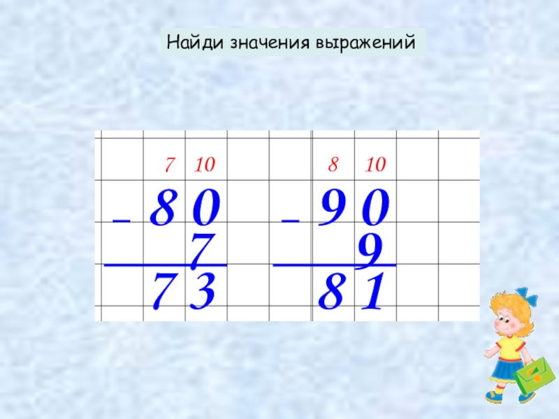 Найди значения выражений8 079 091010 87