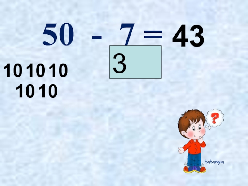 Слайд 450 - 7 =