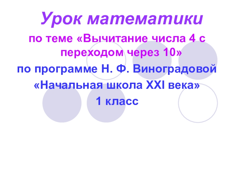 Урок математикипо теме «Вычитание числа 4 с переходом через 10»по программе Н. Ф. Виноградовой«Начальная школа