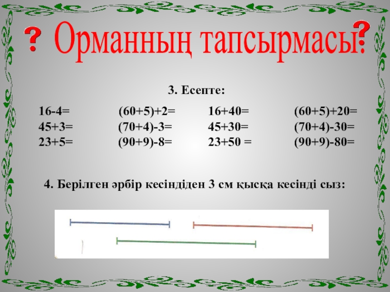 4. Берілген әрбір кесіндіден 3 см қысқа кесінді сыз: