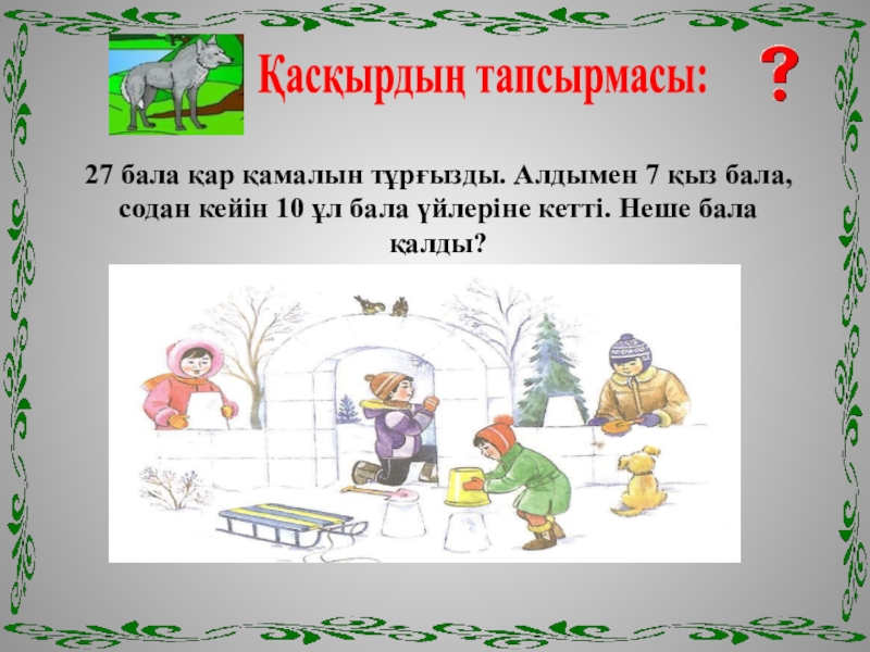 Өрнек: 27-(7+10)=10 (б). -қалды.