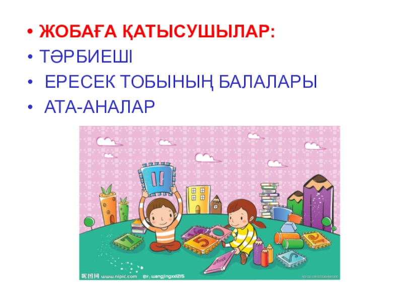 Слайд 4ЖОБАҒА ҚАТЫСУШЫЛАР: