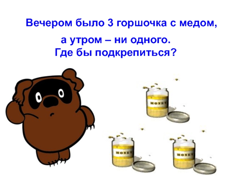 Слайд 13Вечером было 3 горшочка с медом,