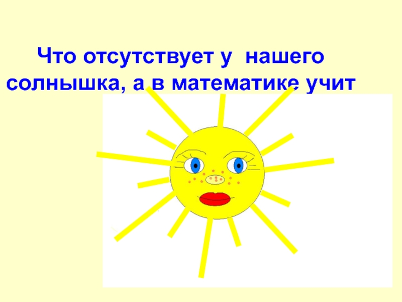 Слайд 9Что отсутствует у нашего солнышка, а в математике учит считать?