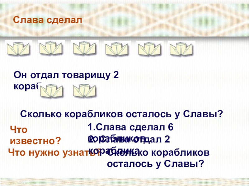 1.Слава сделал 6 корабликов