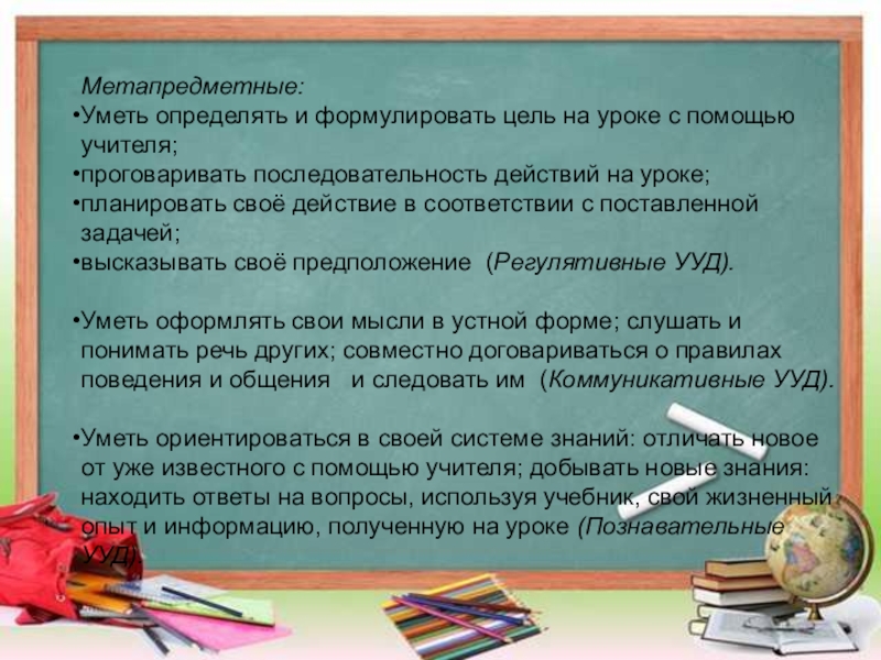 Уметь определять и формулировать цель на уроке с помощью учителя;
