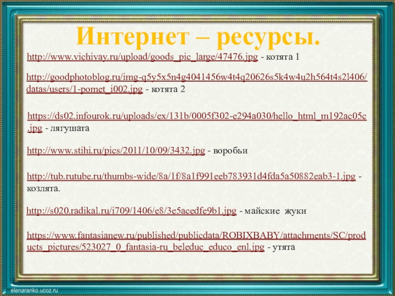 Интернет – ресурсы.