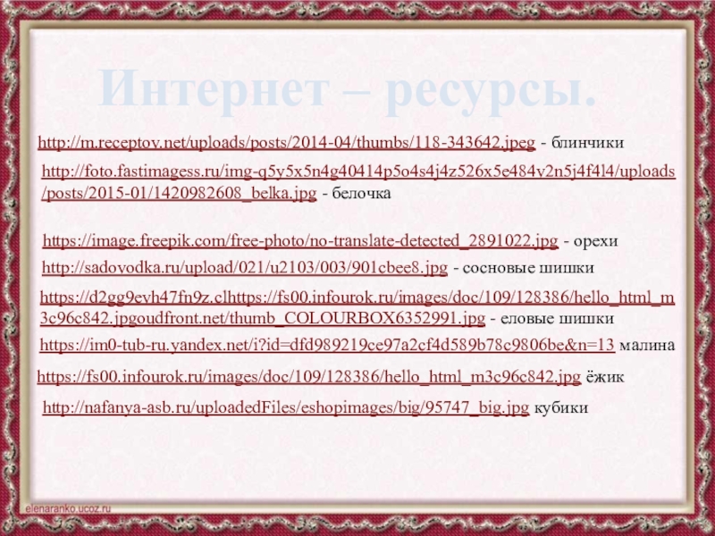 Интернет – ресурсы.