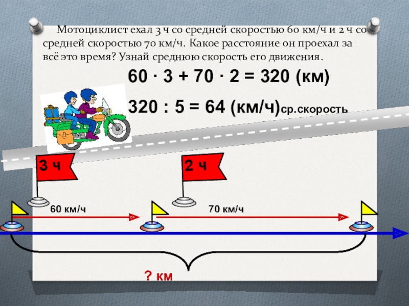 60 ∙ 3 + 70 ∙ 2 = 320 (км)