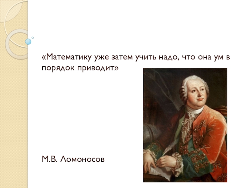 Слайд 2«Математику уже затем учить надо, что она ум в порядок приводит»