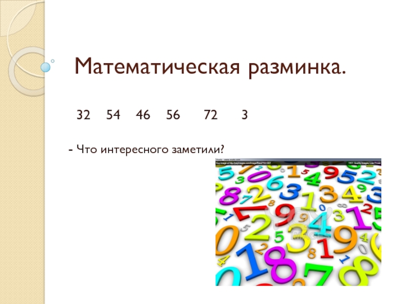 Математическая разминка. 32  54  46  56   72   3- Что