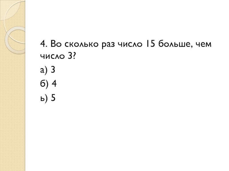 4. Во сколько раз число 15 больше, чем число 3?а) 3б) 4ь) 5