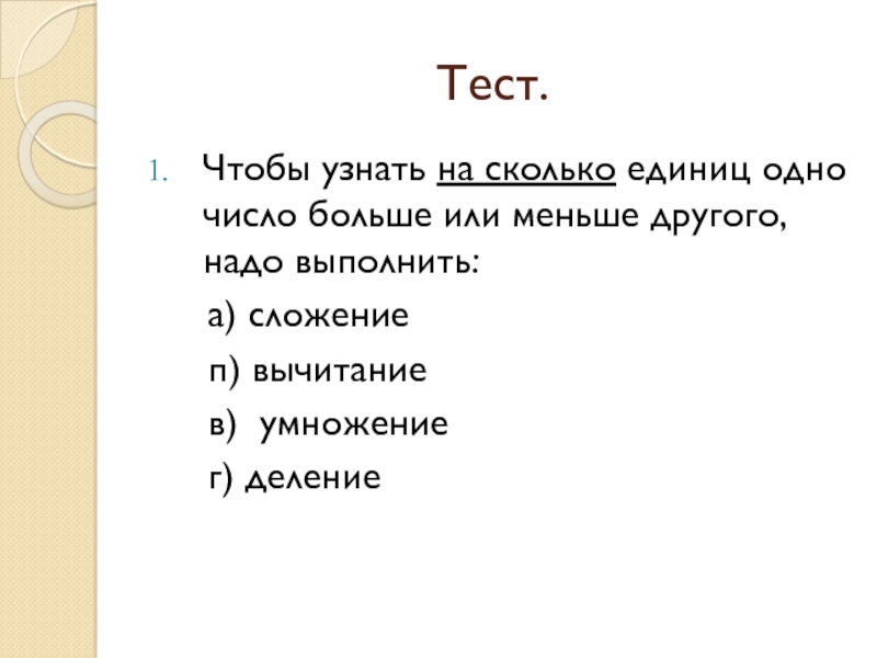 Тест.Чтобы узнать на сколько единиц одно число