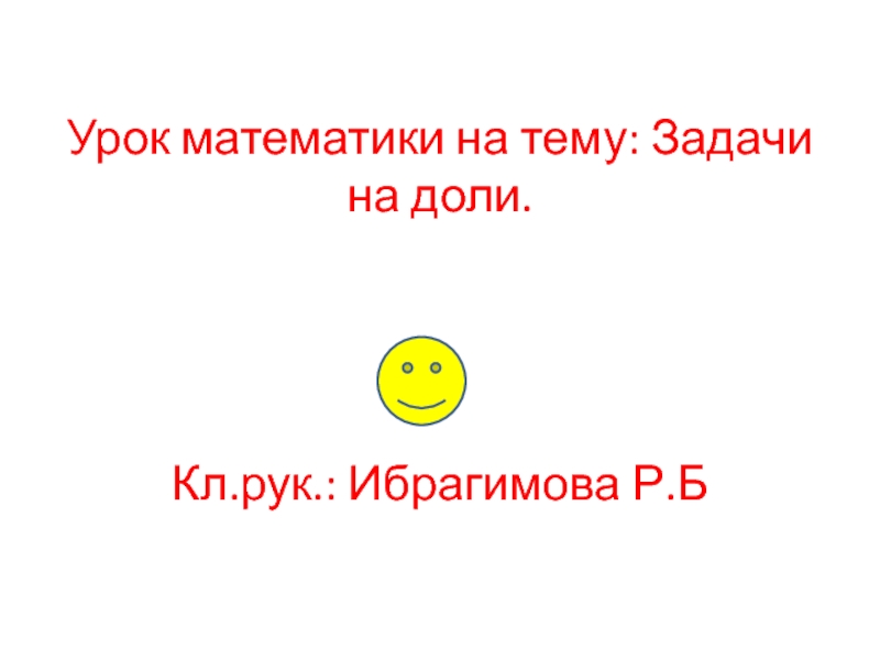 Слайд 1Урок математики на тему: Задачи на доли. Кл.рук.: Ибрагимова Р.Б