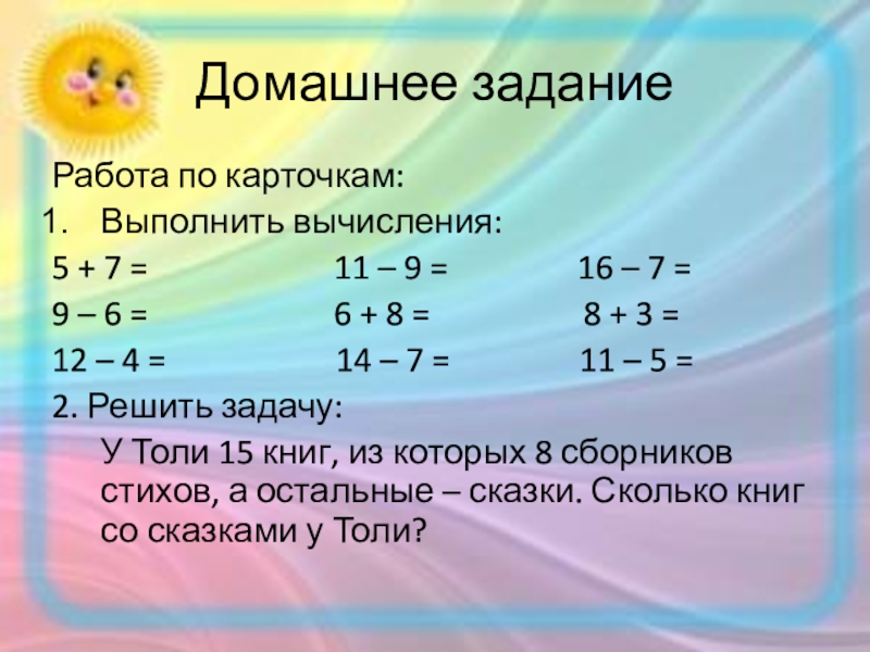 У Толи 15 книг, из которых 8 сборников стихов, а остальные – сказки. Сколько книг со сказками у Толи?