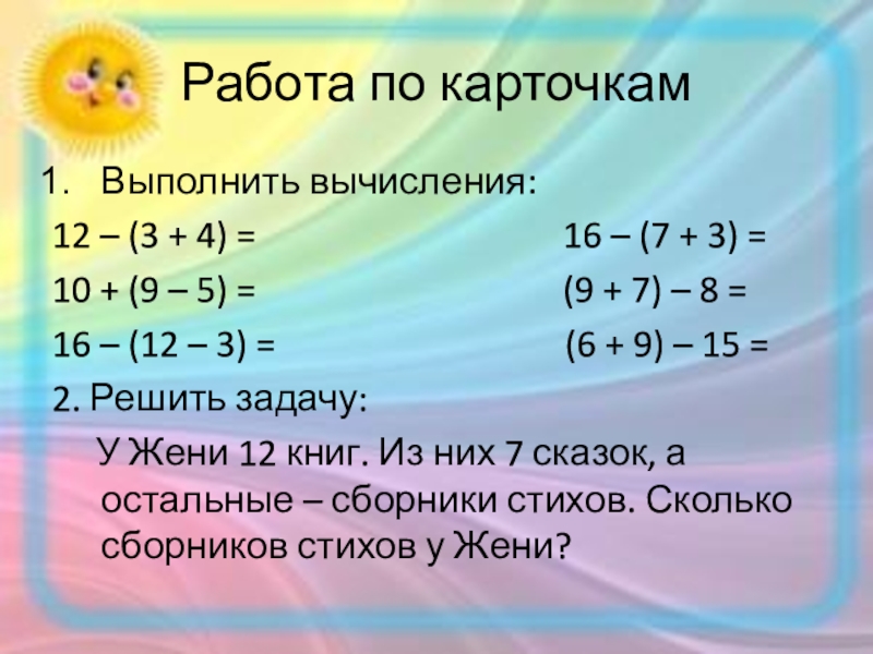 У Жени 12 книг. Из них 7 сказок, а остальные – сборники стихов. Сколько сборников стихов у Жени?