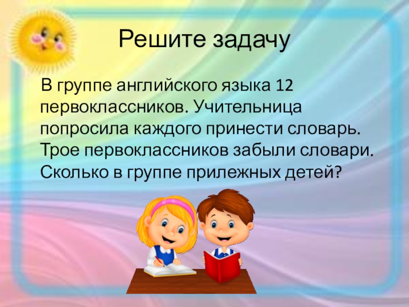каждого принести словарь. Трое первоклассников забыли словари. Сколько в группе прилежных детей?