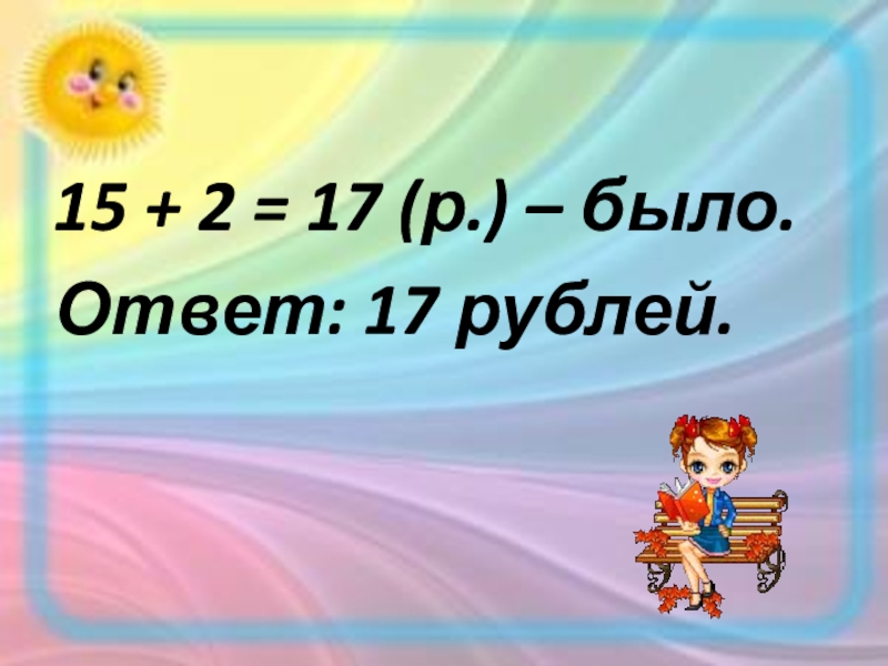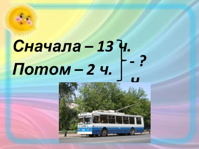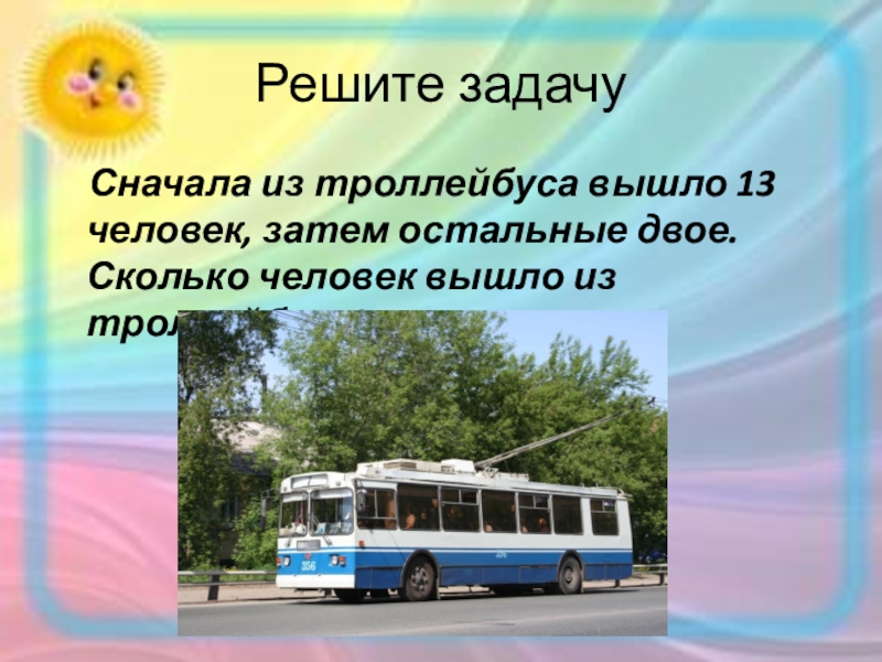 Слайд 713 + 2 = 15 (ч.) – вышло из троллейбуса.