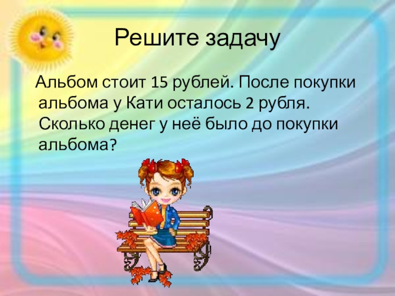 Кати осталось 2 рубля. Сколько денег у неё было до покупки альбома?