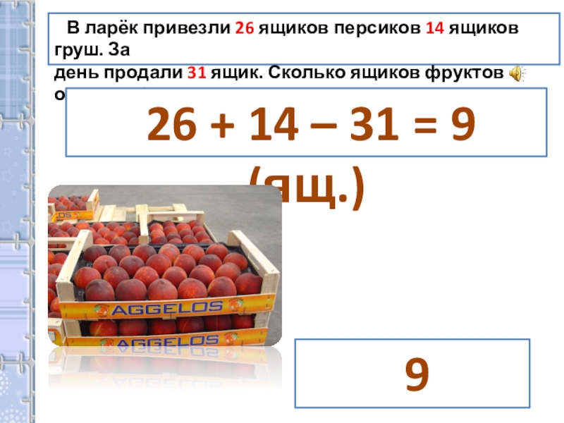26 + 14 – 31 = 9 (ящ.)