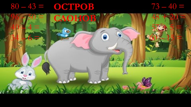 ОСТРОВ СЛОНОВ.        80 – 43 =