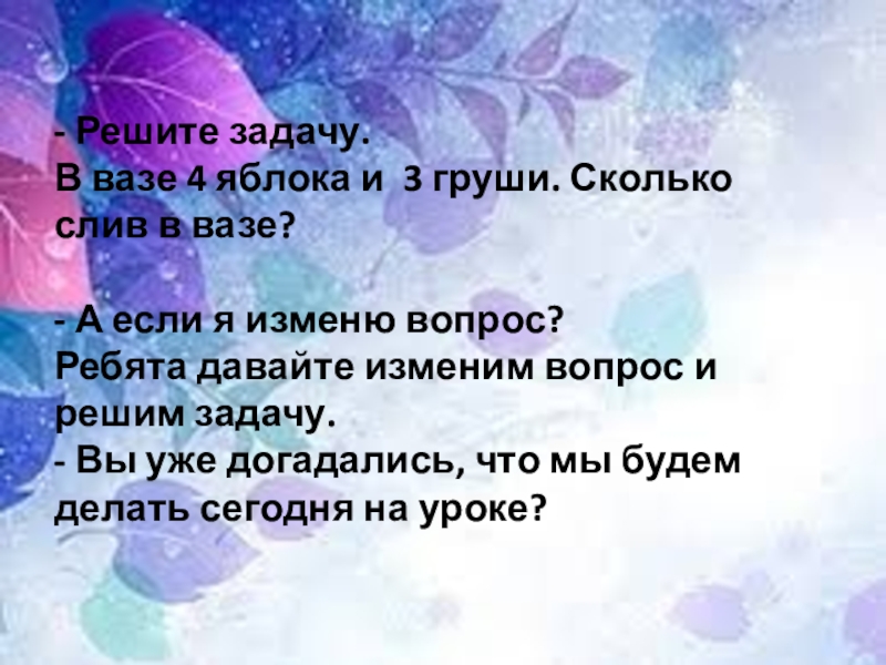 «Закрепление изученных приёмов вычислений. Решение задач»