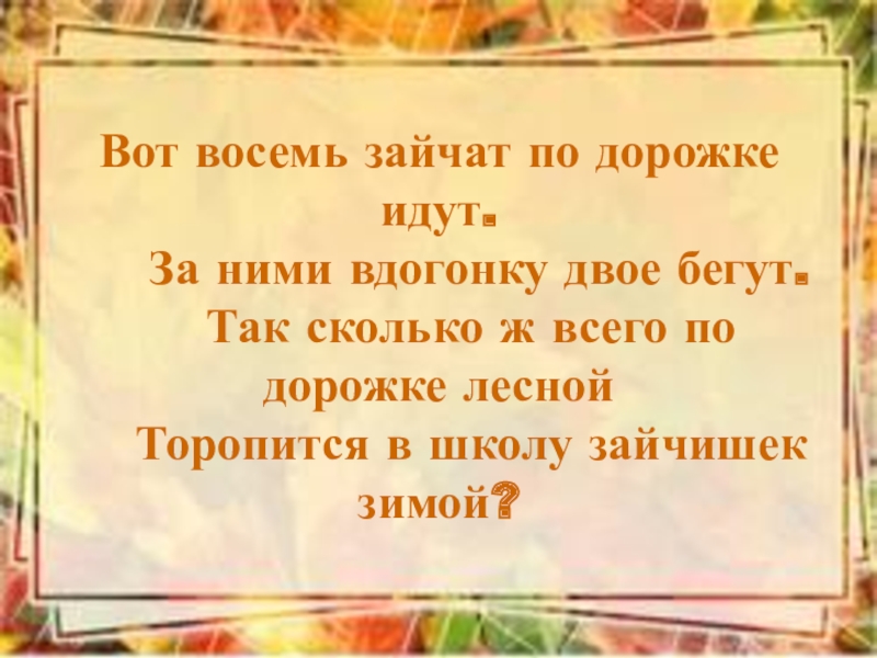 Слайд 19 Вот восемь зайчат по дорожке идут. За ними