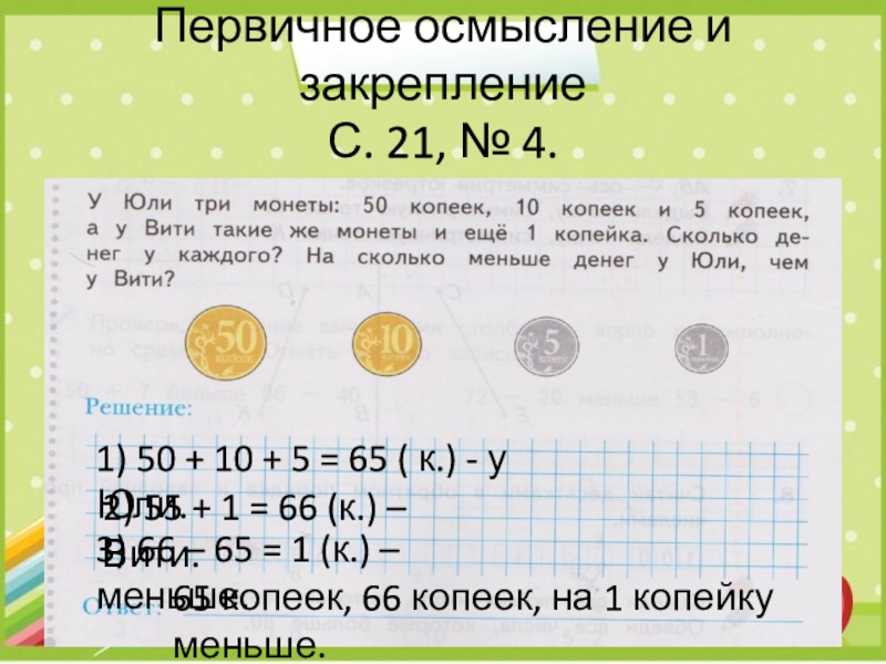 65 копеек, 66 копеек, на 1 копейку меньше.