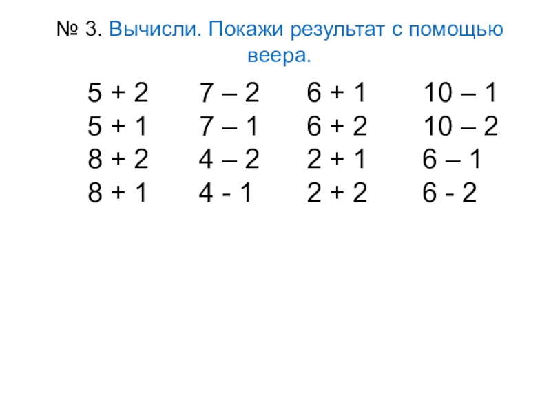 № 3. Вычисли. Покажи результат с помощью веера.